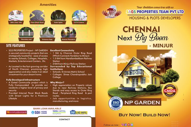 Minjur, known as the crowned jewel of North Chennai, is a treasure trove of upcoming amenities that offer residents a life filled with bliss. Bujji Garden, one of SGS PROPERTIES’s most coveted plots, promises a lifestyle that seamlessly combines ease and comfort with connectivity. This epitomizes balance—a guiding star for those seeking a fulfilling living experience.